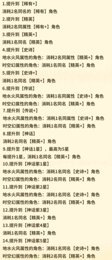 角色稀有度分为【普通】、【稀有】、【精英】,除了【普通】角色,其他角色都可以通过【角色觉醒】升级稀有度,并提升强化上限。