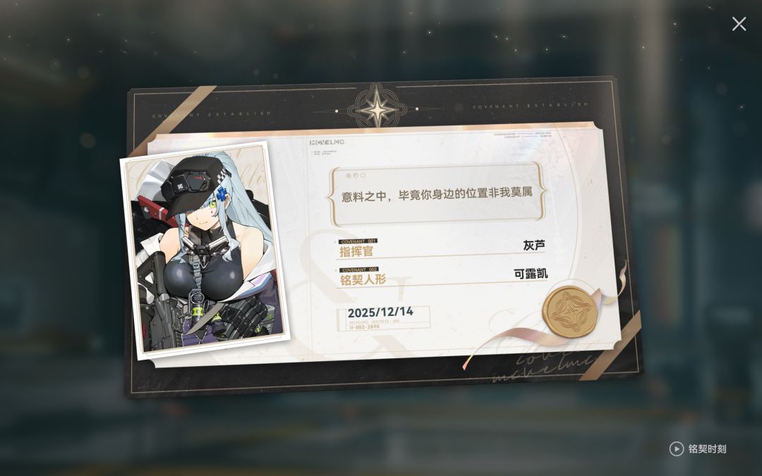 虽然我不厨k416,但是k416好看喵,没忍住又花了30软妹币铭契了(但是感觉还是有点小贵啊,我每个人形都想铭契一下啊