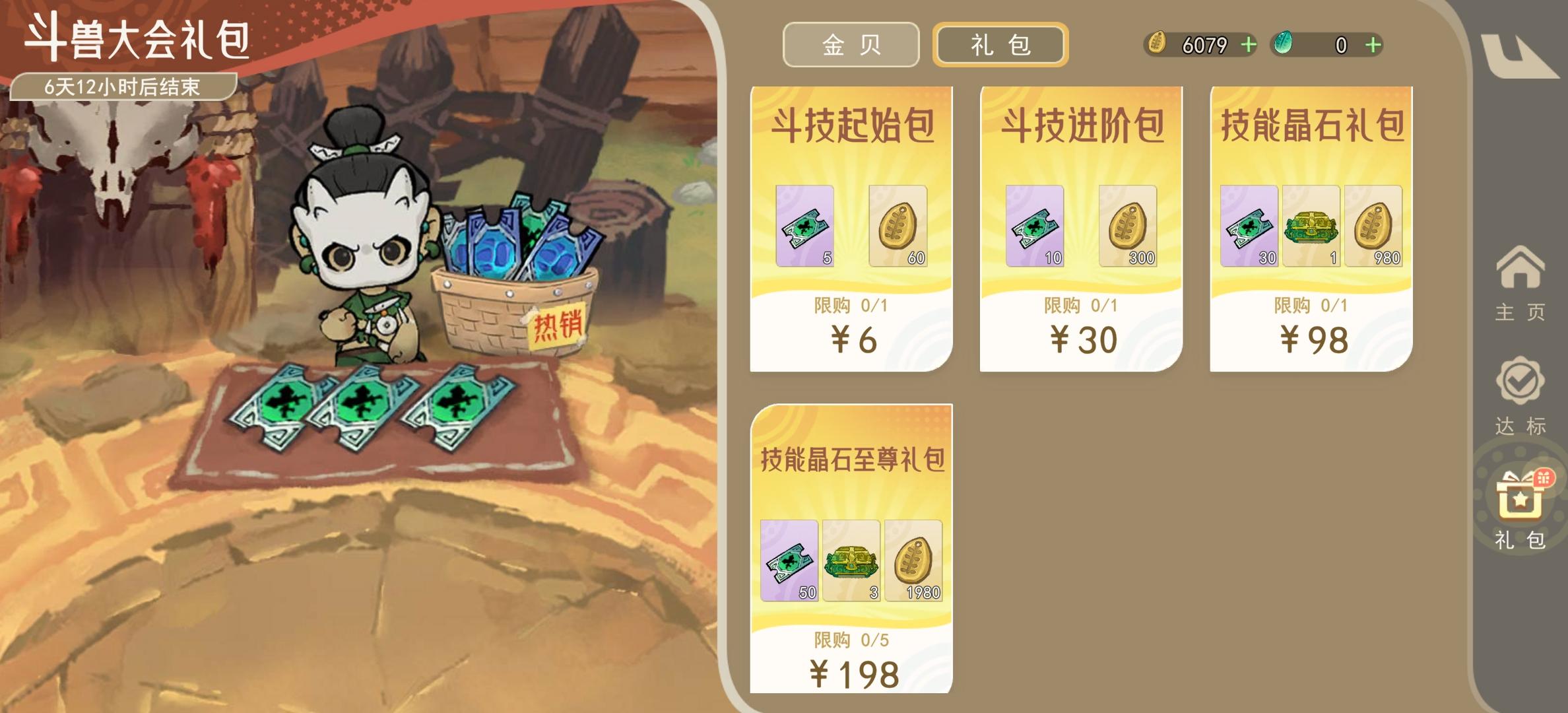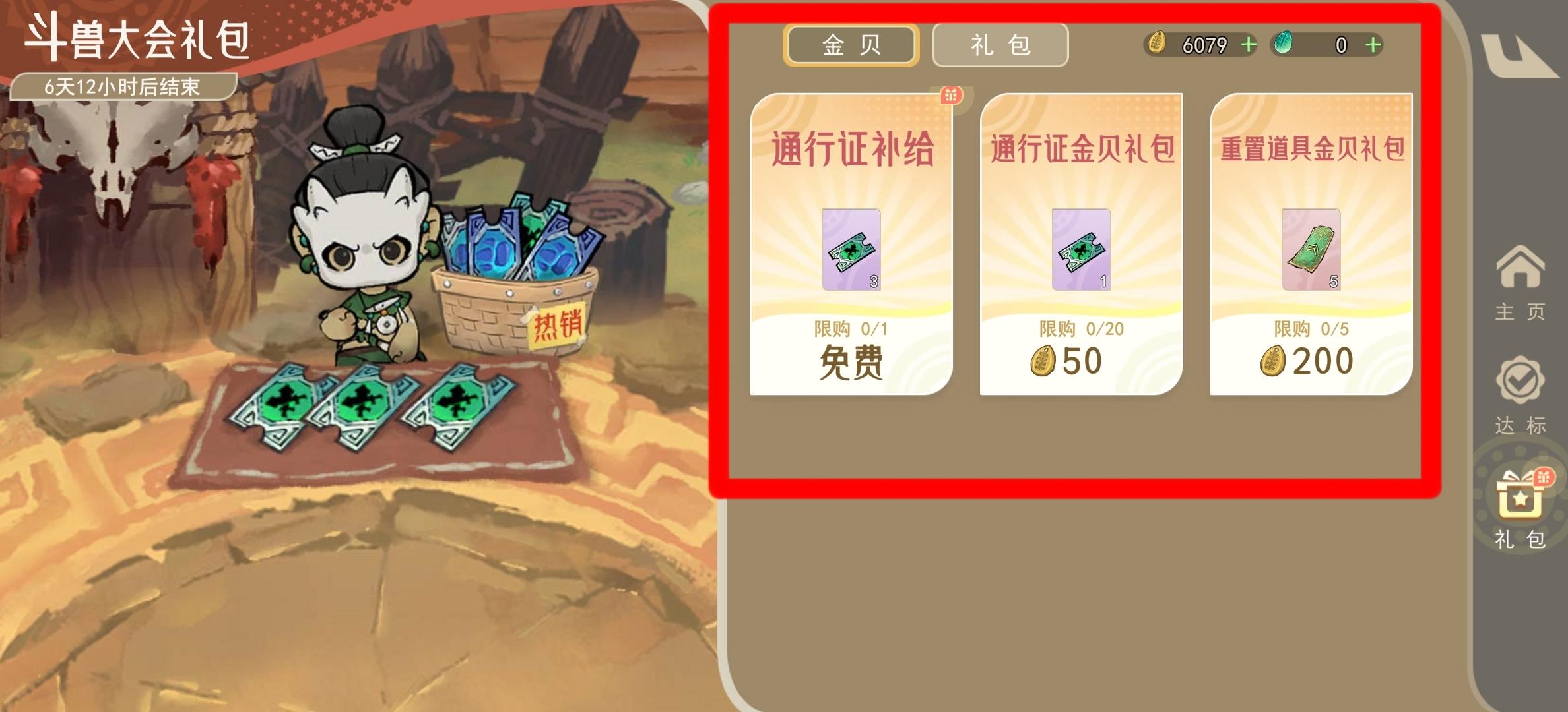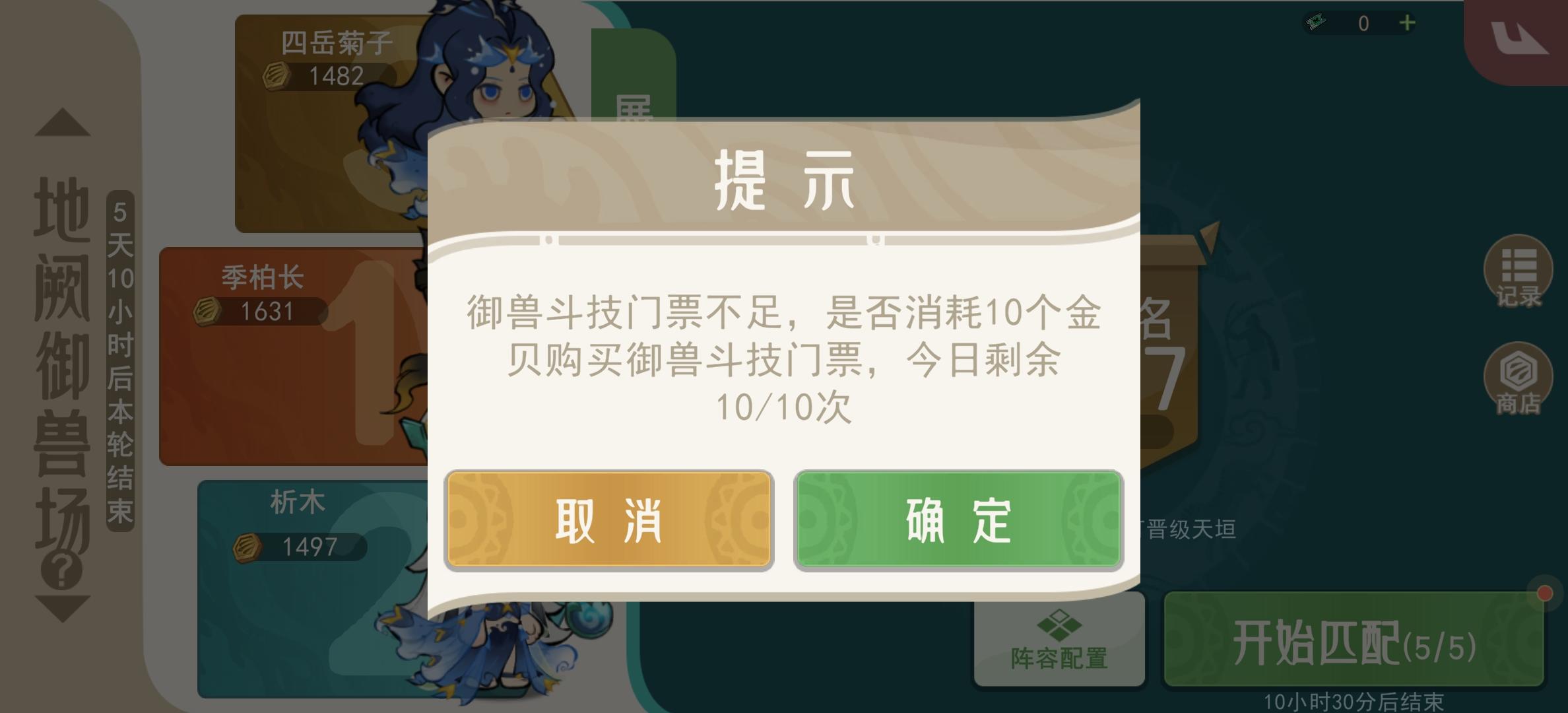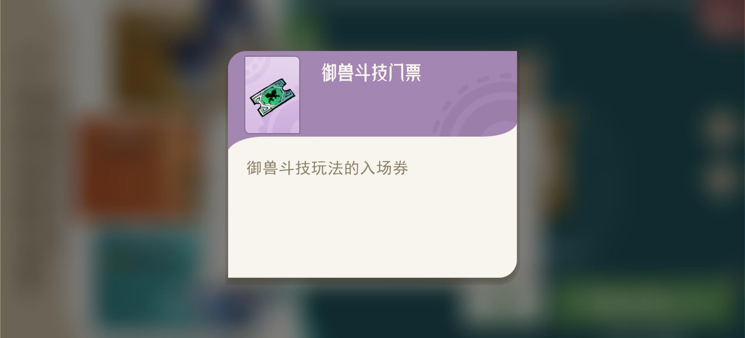 日常每天需购买6张【御兽斗技门票】用于完成斗兽大会任务。