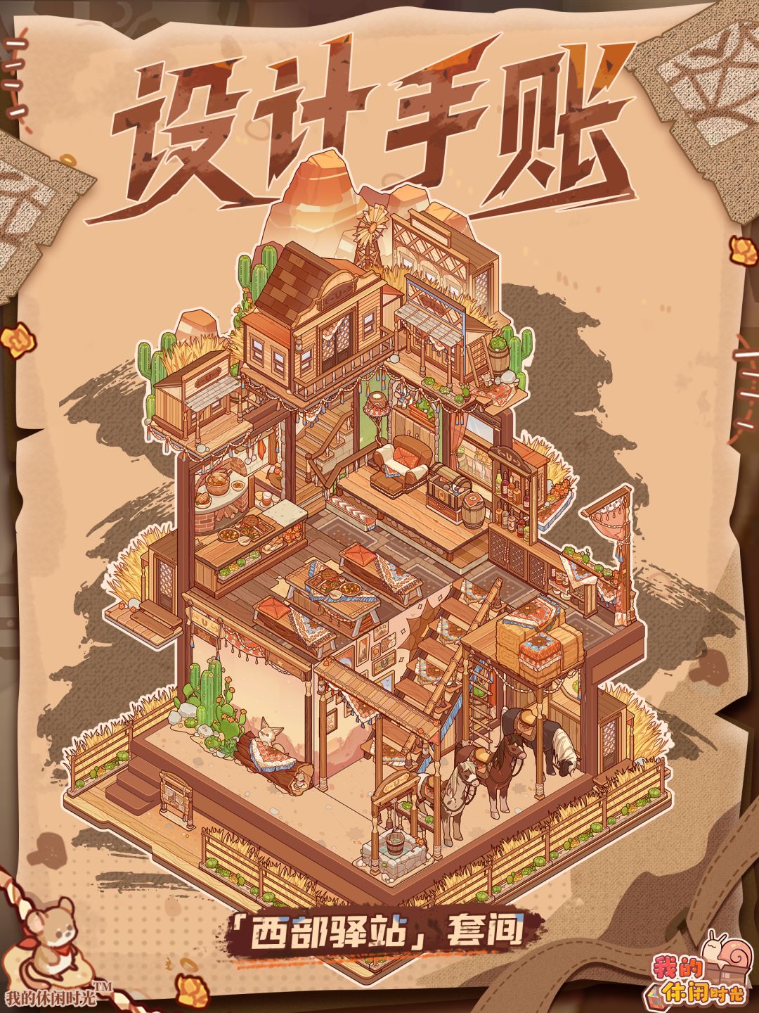 🏜️全新限时星耀套间「西部驿站」即将于12月19日上线!今天先为各位小蜗带来「西部驿站」套间的设计手帐,该套间还拥有动态屋顶效果,快跟居居一起近距离欣赏套间细节吧!