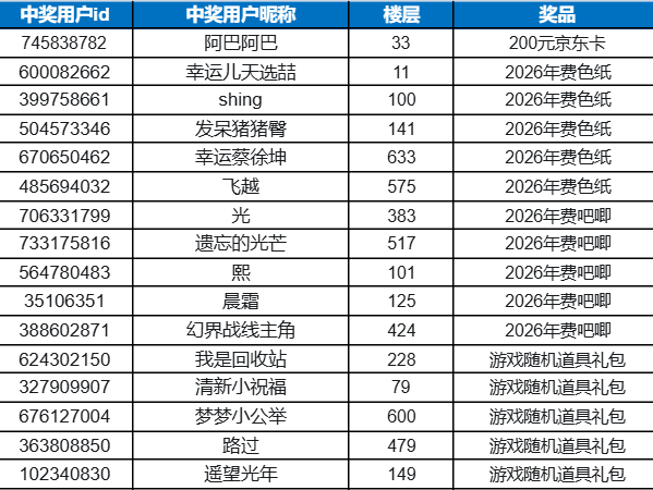 《赛尔号巅峰之战》2026年费即将登场!预约赢京东卡活动开奖啦!感谢大家的热情参与!!让我们恭喜以下获奖的赛尔们!(鼓掌!~(‾⌣‾~)