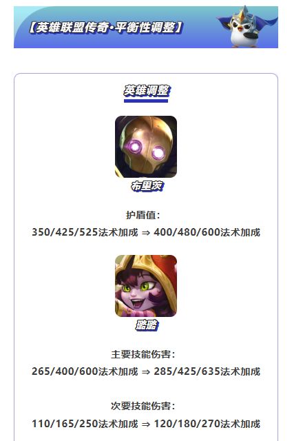 感谢各位弈士体验【英雄联盟传奇】,本次更新我们调整了部分羁绊和英雄的平衡性:小幅降低了约德尔人与比尔吉沃特羁绊的经济收益能力,同时提升了约德尔人弈子的战斗能力。对部分表现较为弱势的英雄进行了加强,此外,我们也适当削弱了部分在各类阵容中表现过于突出的通用型高费英雄。期待大家在新版本中继续探索更多阵容与策略!感谢大家对《金铲铲之战》的喜爱与支持,一起来看看本次更新详情吧~