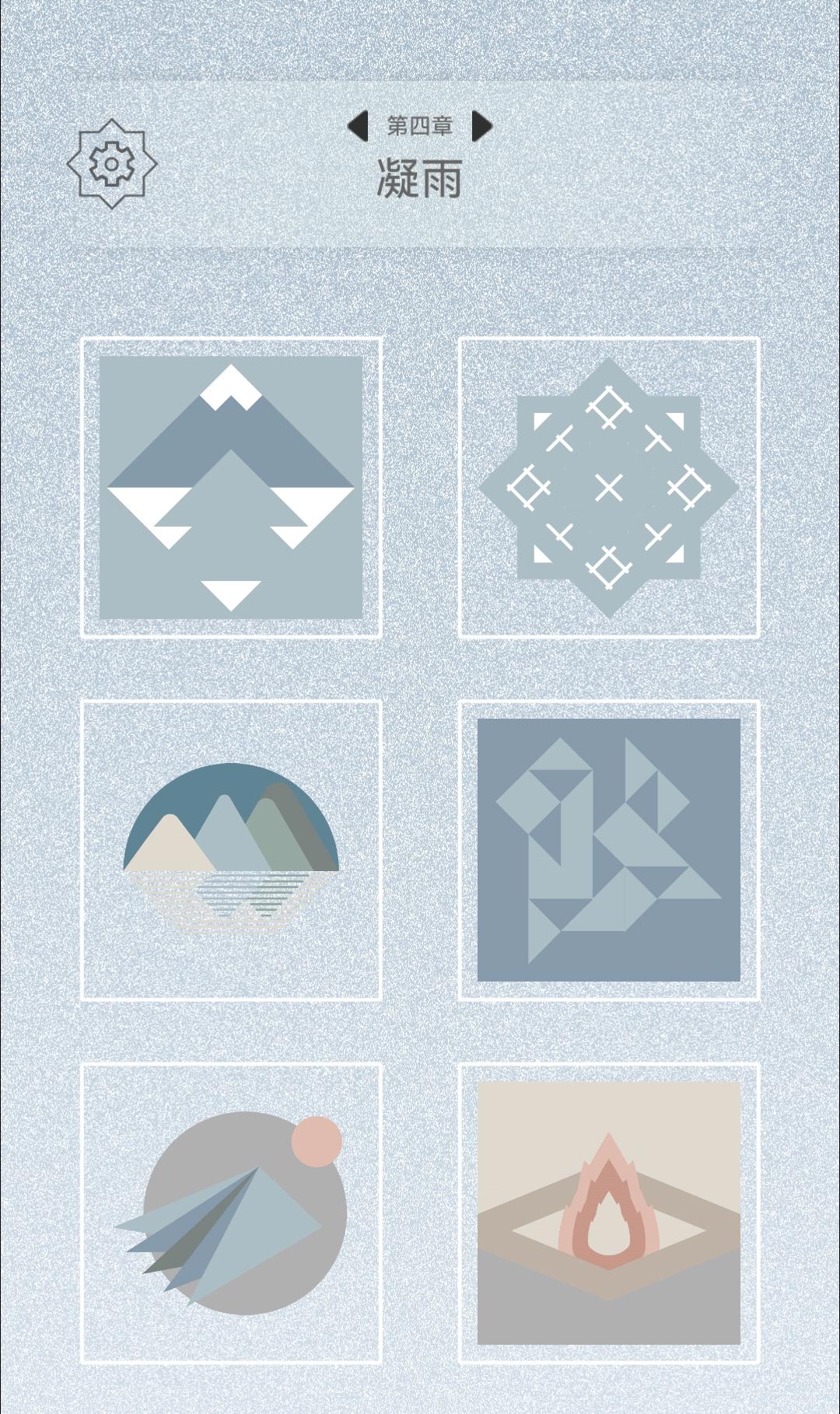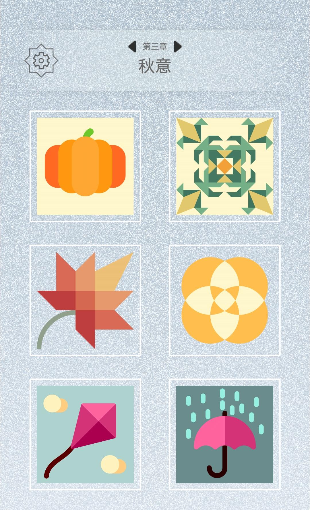 游戏难度适当,仅有个别关卡比较难;主要还是关卡数量多,总共10章120关,每章包含10个常规关卡和2个隐藏关卡。我通关的策略是先把所有碎片转到正确的方向,再进行叠放。