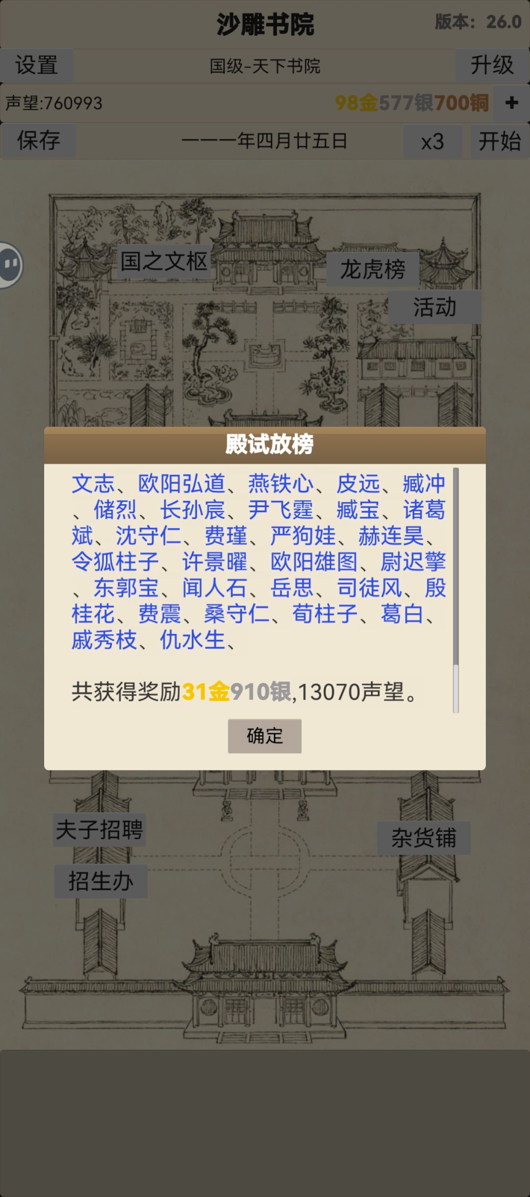 每次修复后耐久上限减少20%,价格为70%,修个1次应该自动销毁,因为再次修复收益反而没有购买新卷大,并且修复后书籍借阅价格会减少80%(至少减少1,修复两次后残卷借阅无收益,不销毁就得付保持维修日常费用)。以残卷举例,残卷单价100声望,耐久600天,修复第一次70声望,耐久480天,也就是170声望=1080天,平均每天消耗0.157声望,500本每天得消耗78.7声望,一年2.83万声望,十年28.3万声望。殿试三年中一百人往上也才1万声望出头,各种招生科举十年顶多10万声望,完全买不起。前述28.3w声望还是建立在购买残卷的基础上,买更贵的书籍,价格更高,完全买不起,分分钟破产。
