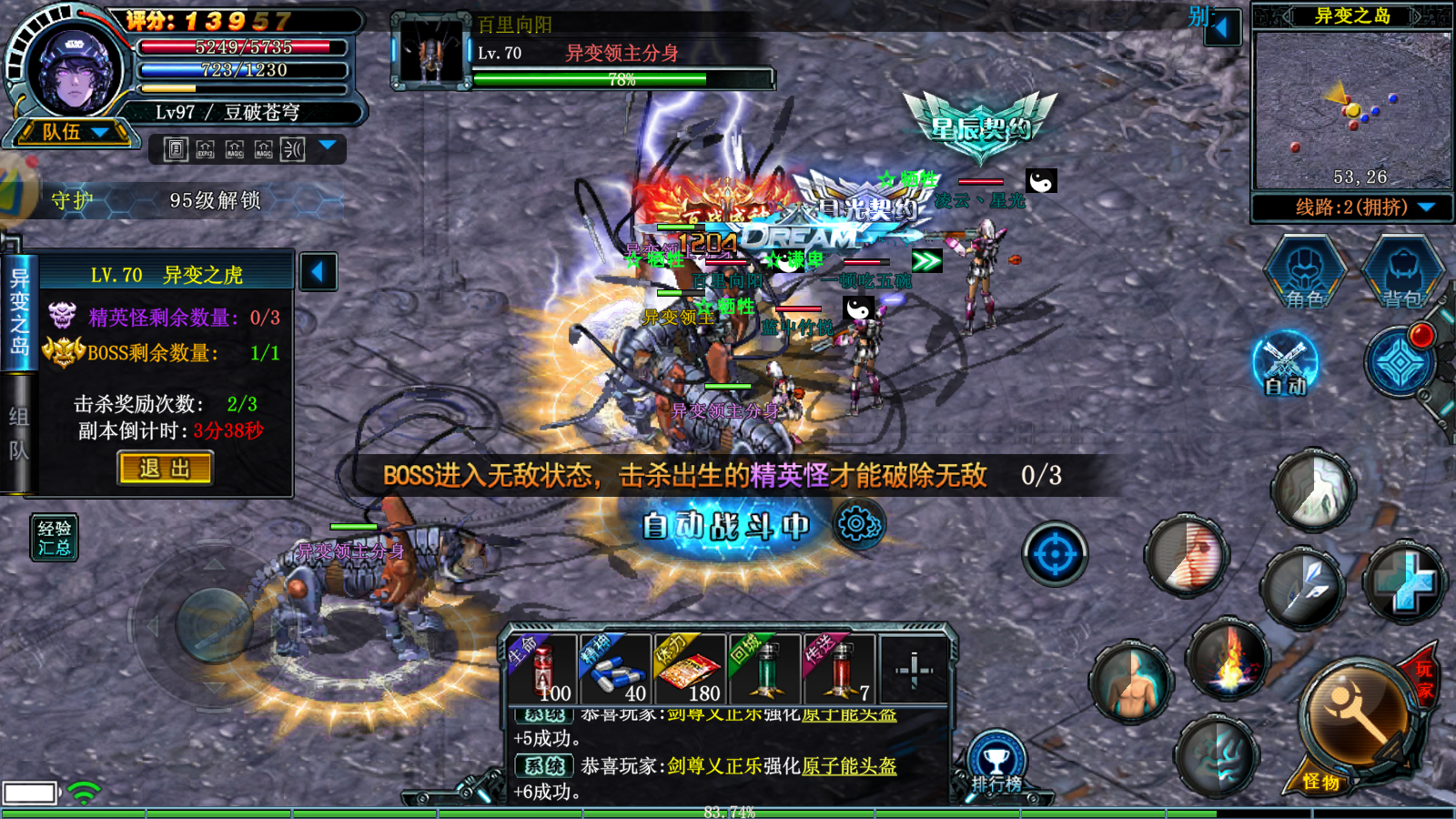 - 特色副本挑战:异变之岛(70 级解锁,2 人组队,击杀 BOSS 分身破除无敌,必掉金色装备);基因裂变(100 级解锁,1-5 人参与,击杀病毒母体掉落金色武器、幻石宝箱);虚拟空间(单人爬塔,每日 3 次挑战,概率掉落 1 级宝石箱);怪物巢穴(多层探索,击杀精英和领主掉落金装、宝石,每日奖励上限 6 次)。