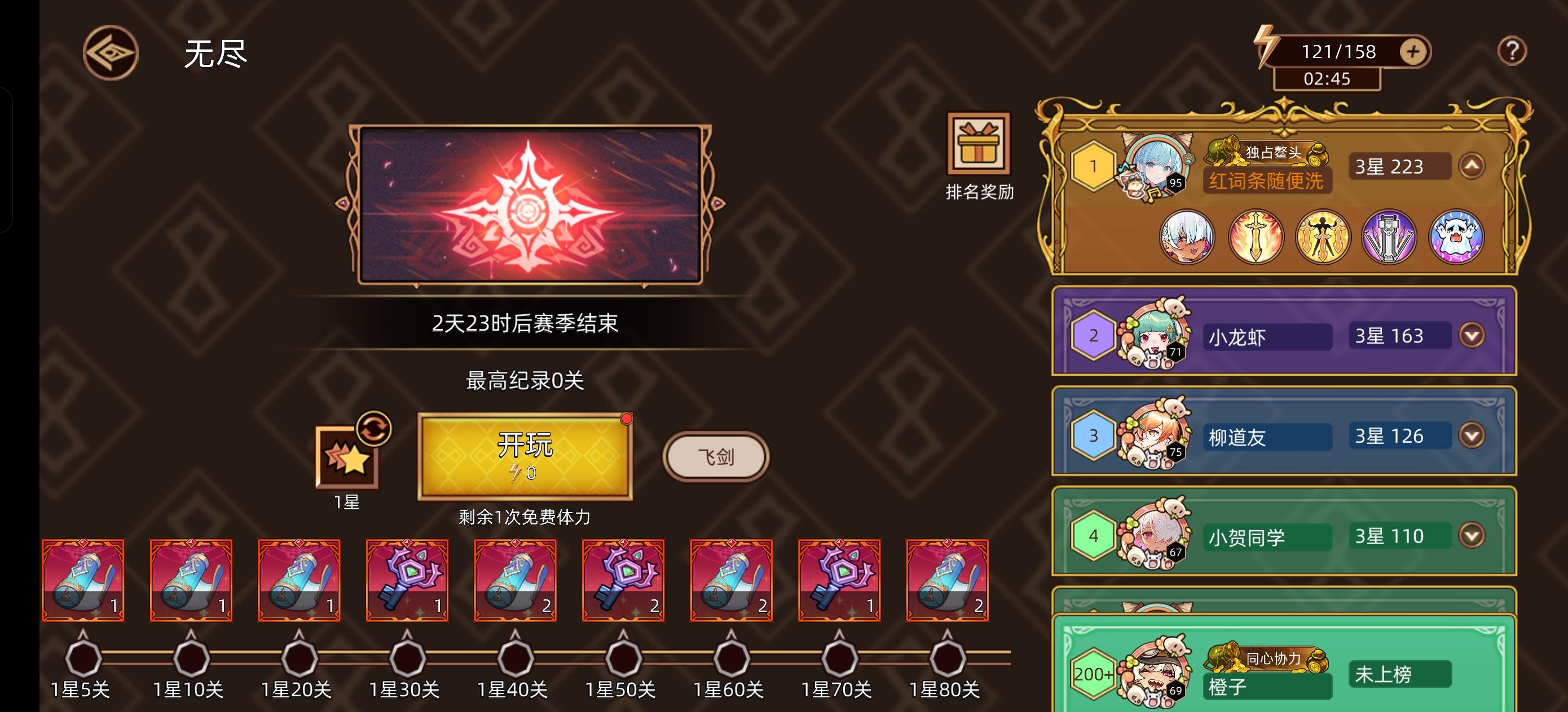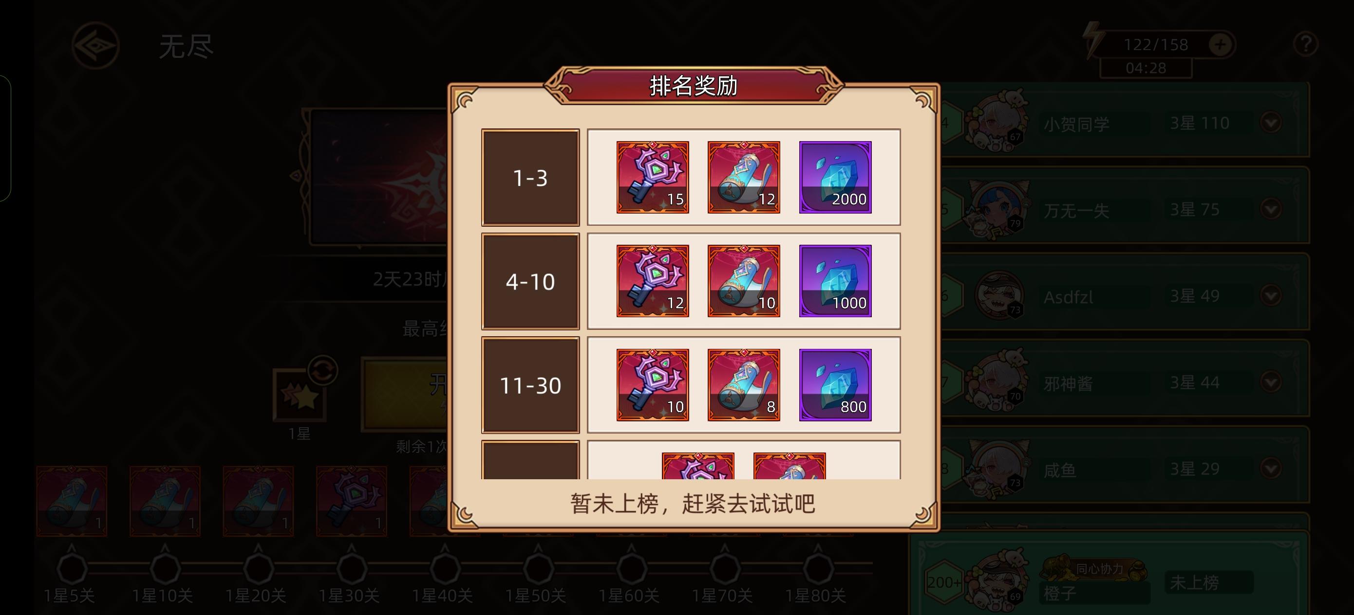 冒险家之旅:还没开下次再写,不难也没排名打满三十层就有奖励,获得共创币,可兑换奖励。