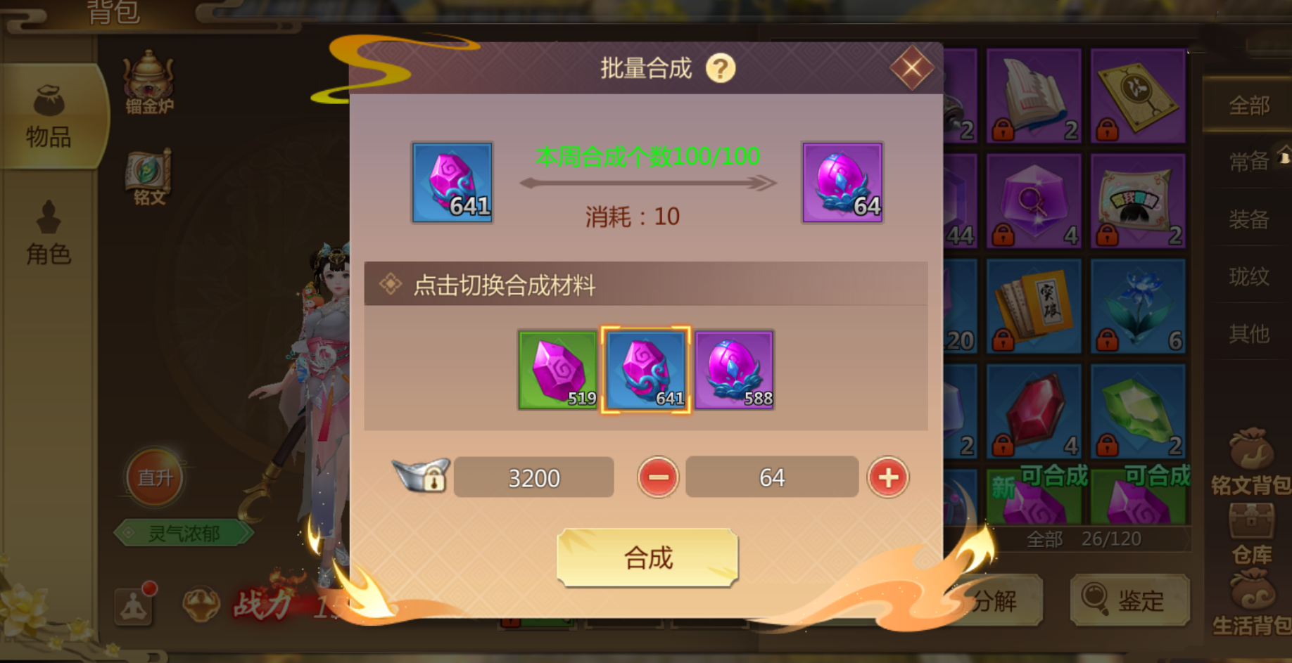 需要合成天工石时,现在只需点击合成,即可直接呼出专属合成界面。在该界面中,你可以便捷选择天工石类型与合成数量,无需再反复进入背包查找,合成流程一气呵成。