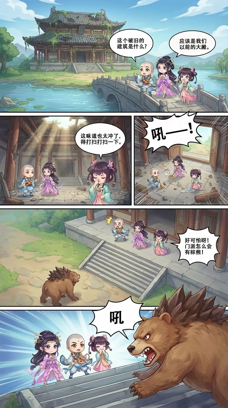 大家好呀,今日跟随常曦回门派抄近路,竟扒出了门派典籍里记载的 “消失大殿”?!临时起意打扫,大殿门口外猛地窜出一头巨型棕熊,上来就扑!想知道我们怎么险胜的?可以往下继续看噢~
