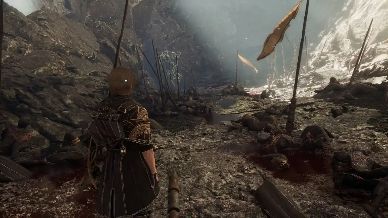 最后就是本作的音乐,在进入游戏的第一个地图,悲怆的人声吟唱悠扬的传进玩家的耳朵,结合一代代远征队的不断向前,我走在前辈为我铺好的道路上,一股使命感油然而生。