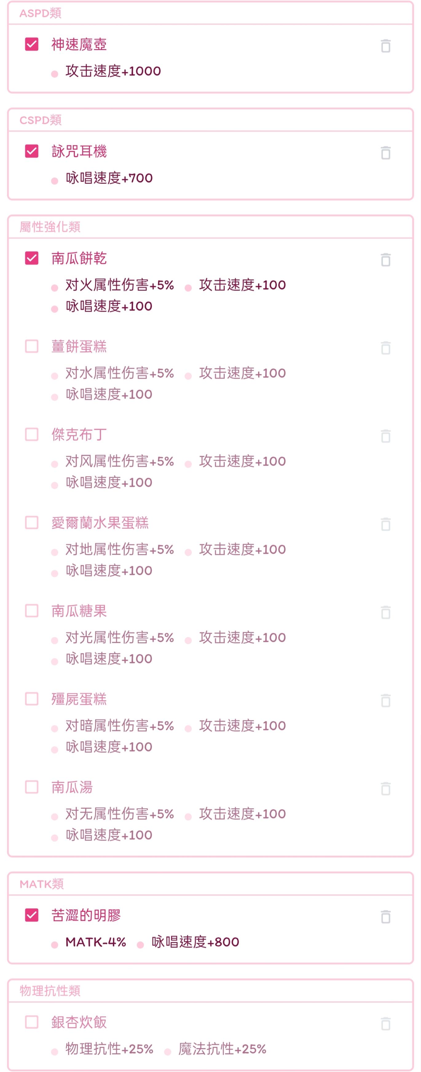 1、在后续计算双万速面板时,会默认算入魔壶、耳机、明胶、任意对属蛋糕。