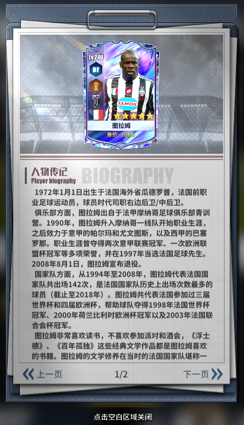 图拉姆:法国传奇后卫,在尤文图斯以其出色的防守、身体素质和进攻能力闻名,初期主打右后卫,后期也能胜任中卫,帮助球队铸就坚固防线。