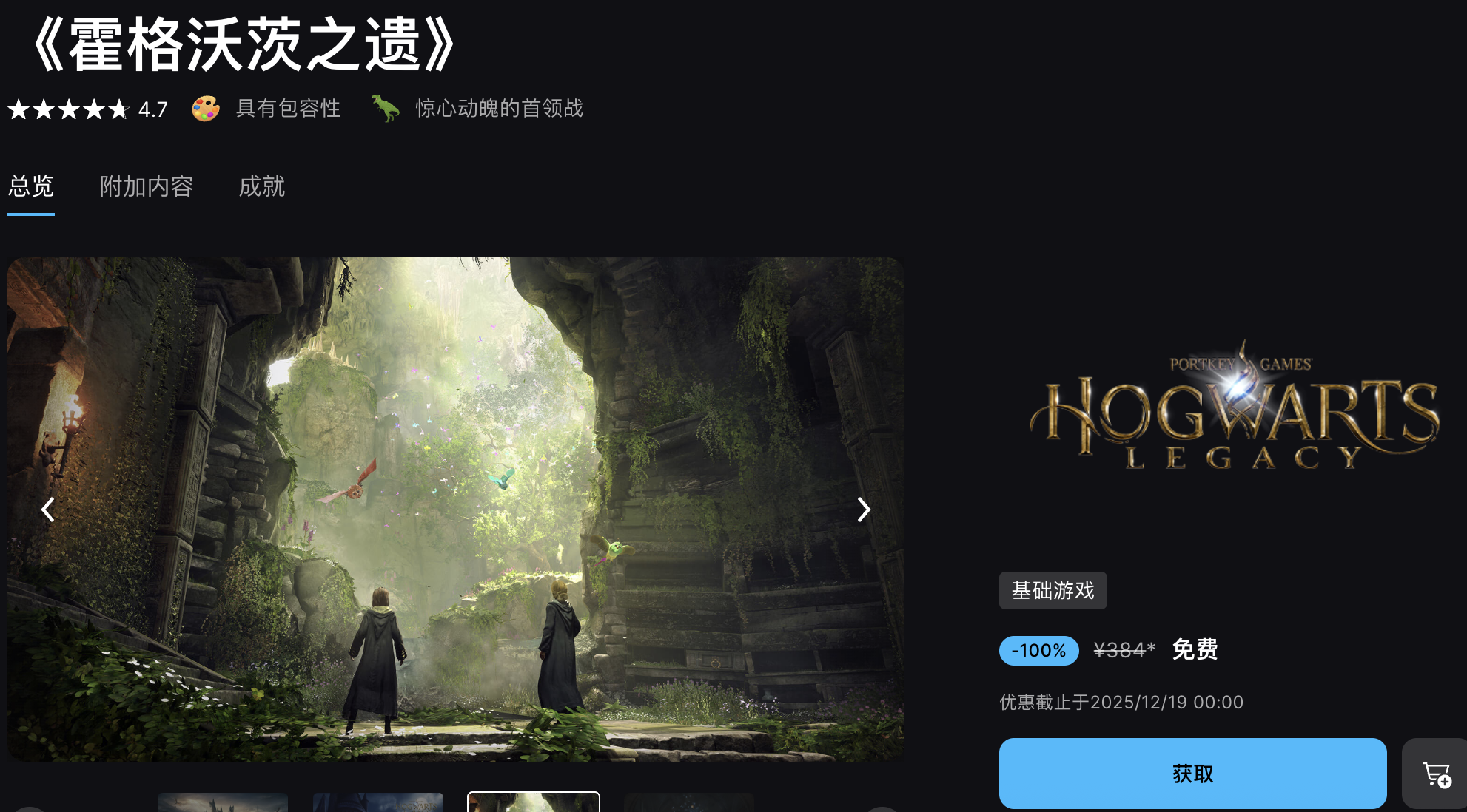 今年首周送《霍格沃茨之遗》,领取截止时间12月19号 0 点