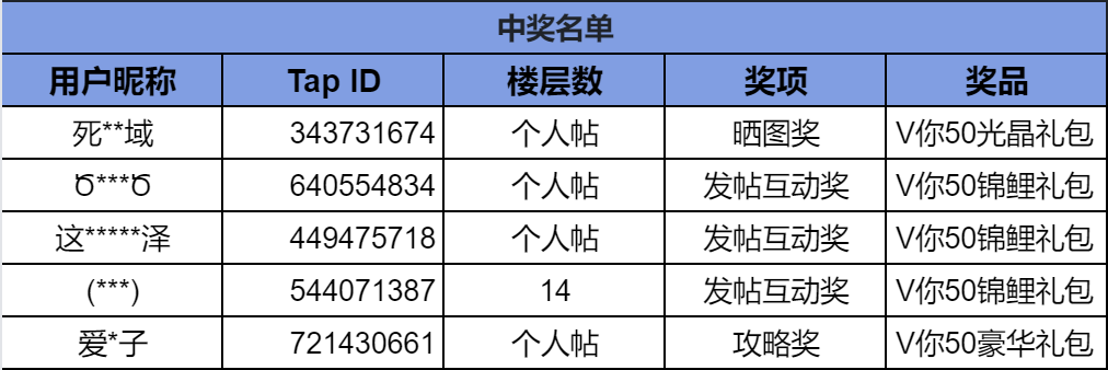 让我们恭喜以下队员,获得本期疯狂星期四活动奖励,具体名单如下: