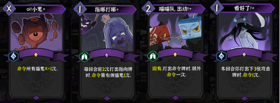 虽然流派不同,但召唤流和反噬流并非对立关系,它们之间有很多互通的牌,比如反噬牌几乎都附带有加伤、抽牌、命令等效果;吸收猫鬼获得力量,也可以增加反噬牌伤害;还有一些能力牌也可以将“反噬”与“命令”链接。