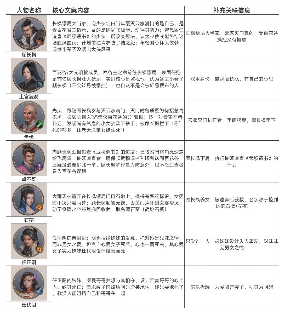 依旧玩家一路打进去,击败顾长枫后其坦白一切。云家是他受百花谷主命令带人屠的,目的是嫁祸飞鹰堡动摇其势力(飞鹰堡这种大势力居然就只有一个阎百战参与剧情),随后顾长枫悔过前往青衣坊化解恩怨(这去了不得赔命?),玩家也将前往百花谷一探究竟。