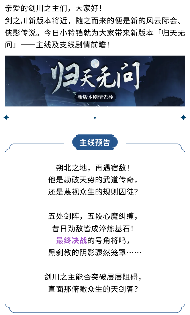 《对决!剑之川》版本前瞻 | 剧情更新速览