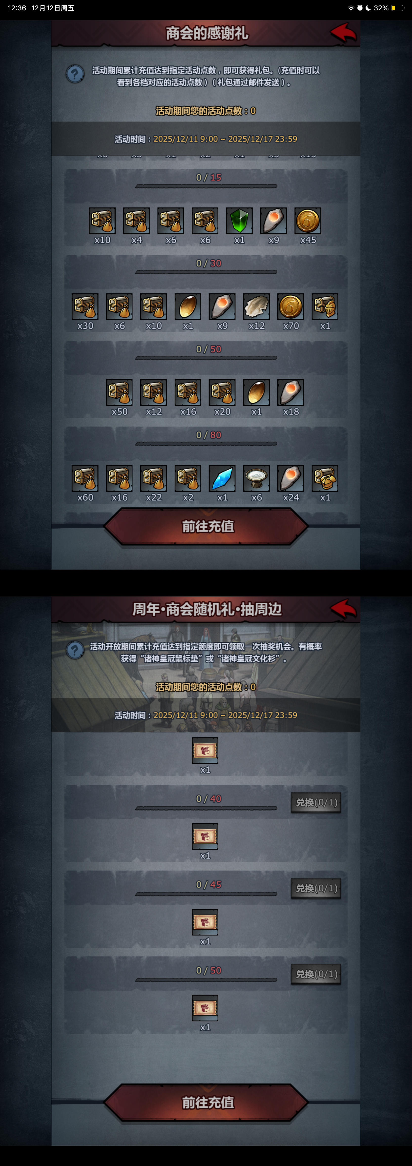 综上,可达到50点数(6¥=1点数)商会抽奖券都能拿到,商会也是50档刚好(服饰挺好的,但是上述冲完后感觉没有赚的了)