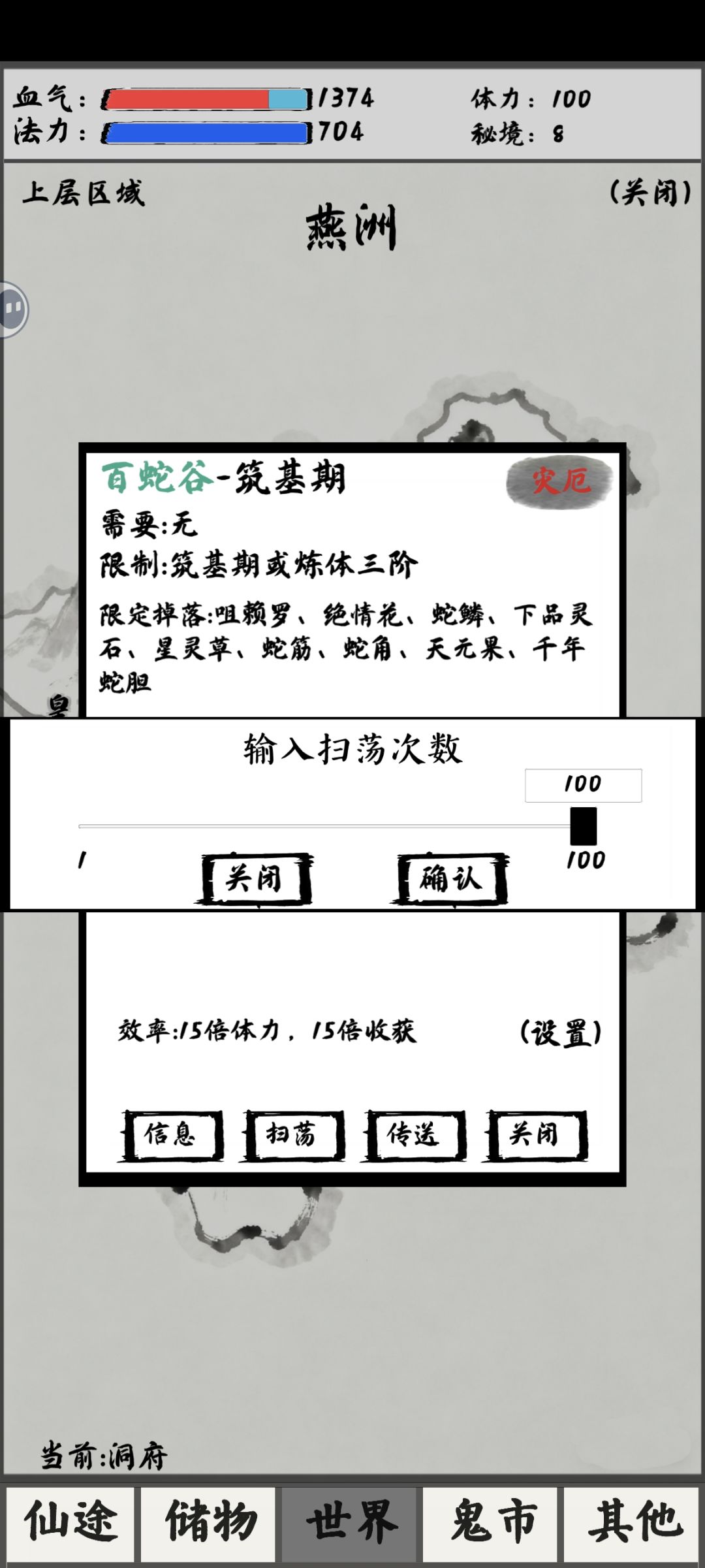 首先当我们已经解锁通关过的地图就不需要来回跑图,浪费时间了,可以直接飞过去,点开扫荡。具体操作如下图。