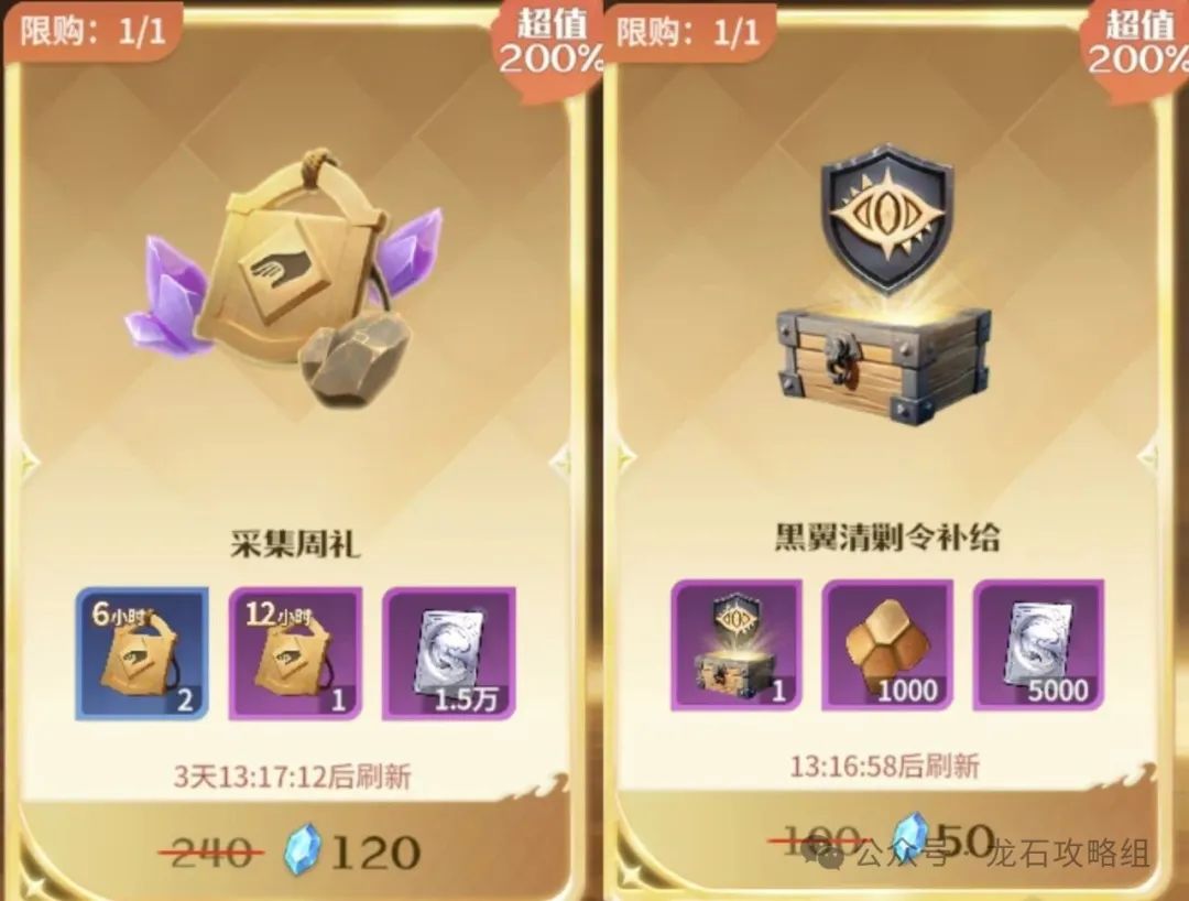 前期建议每日黑翼礼包以及周采集礼包拉满,能跟上T0-T1发育梯队