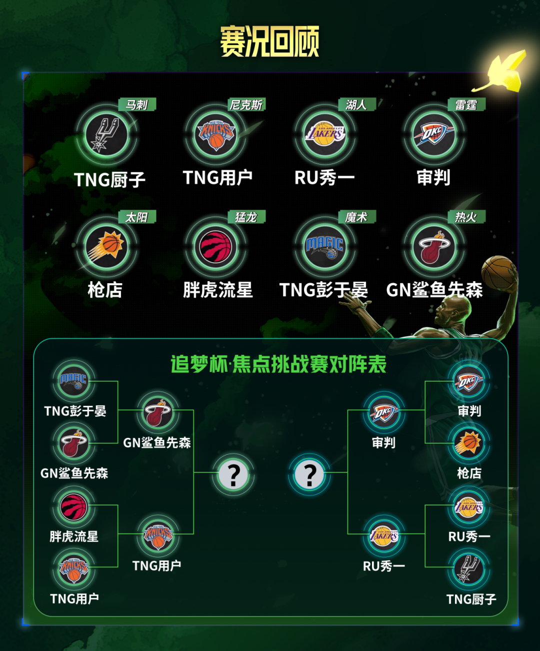 东部晋级者:鲨鱼先森(热火队)、TNG用户(尼克斯队)
