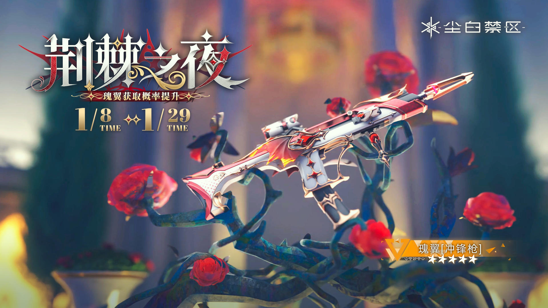 1月8日04:00 - 1月29日04:00在活动商店限时兑换紫色品质冲锋枪【枯萎蔓延】,后勤【祈歌】小队。