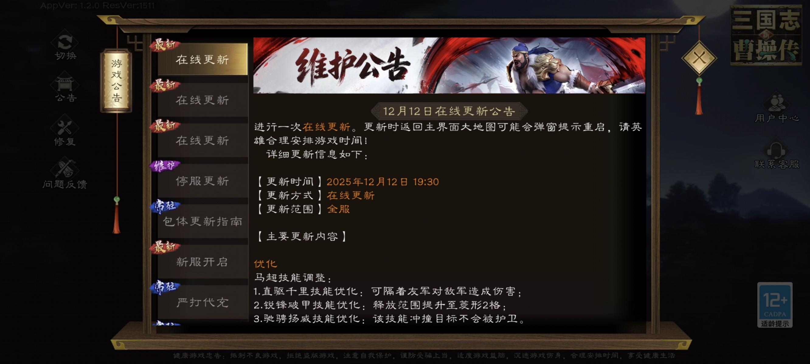 首先大招可以隔人打中敌人,防止在友军扎堆的时候马超会失去目标,然后1技能加了4个攻击范围,可以菱形两格使用,同时冲撞技能增加了无视护卫的机制(我还以为原来就有……),可以说技能机制整体优化了个遍,不过目前马超冲撞技能在击杀敌人的情况下无法前进一格,会导致debuff加不到后面的人,不知道是机制还是bug