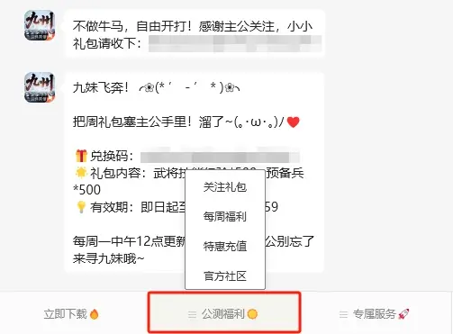 ●企微有礼:添加官方客服九妹并加入官方玩家群即可领取好礼,还可通过好感值商城兑换各种游戏礼包;