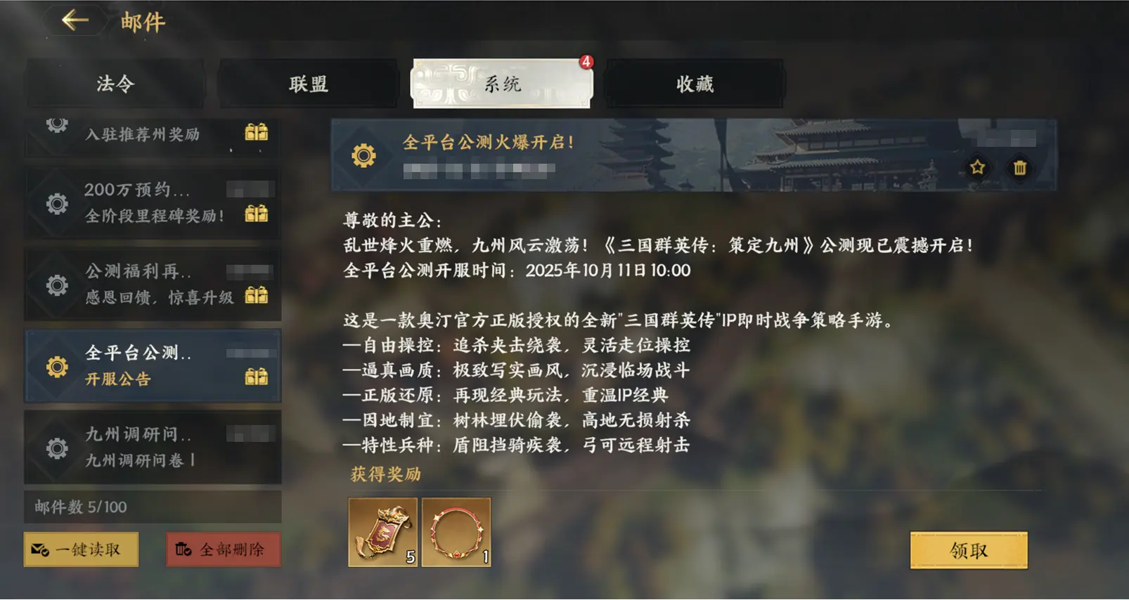 ●公众号关注有礼:关注《三国群英传:策定九州》官方公众号,点击菜单栏「公测福利-关注礼包」即可获得礼包码,点击「公测福利-每周福利」每周还可获得礼包一份!此外,公众号也将定期发起有奖互动,为大家送上福利!