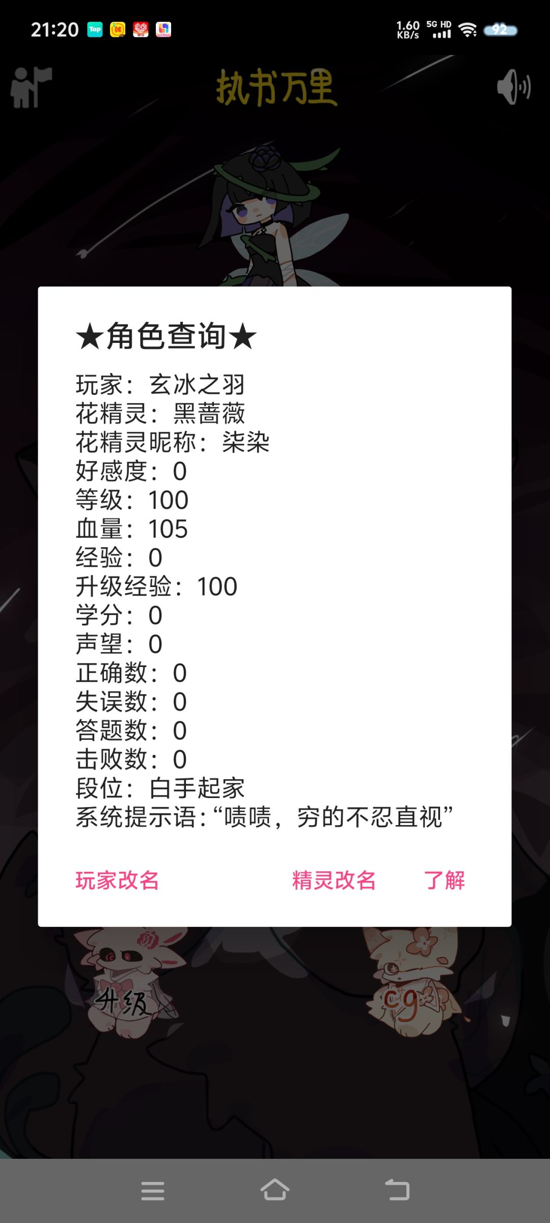 点击查询可以查看大部分角色和精灵信息,可以随时改名不收取任何货币