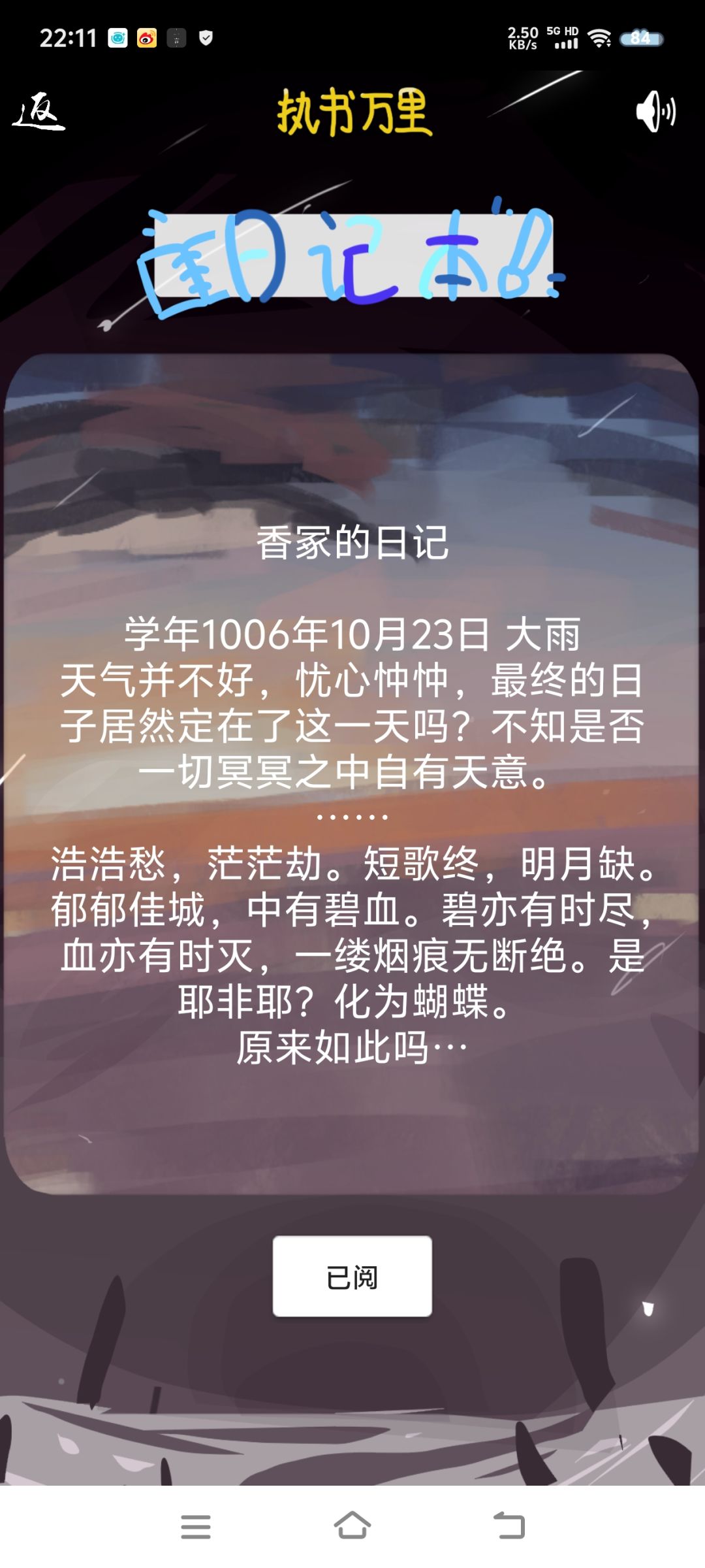 日记本,每日可以看一次,是不同角色记录的不同发生的事情,可以靠这个拼凑一些角色故事和伏笔