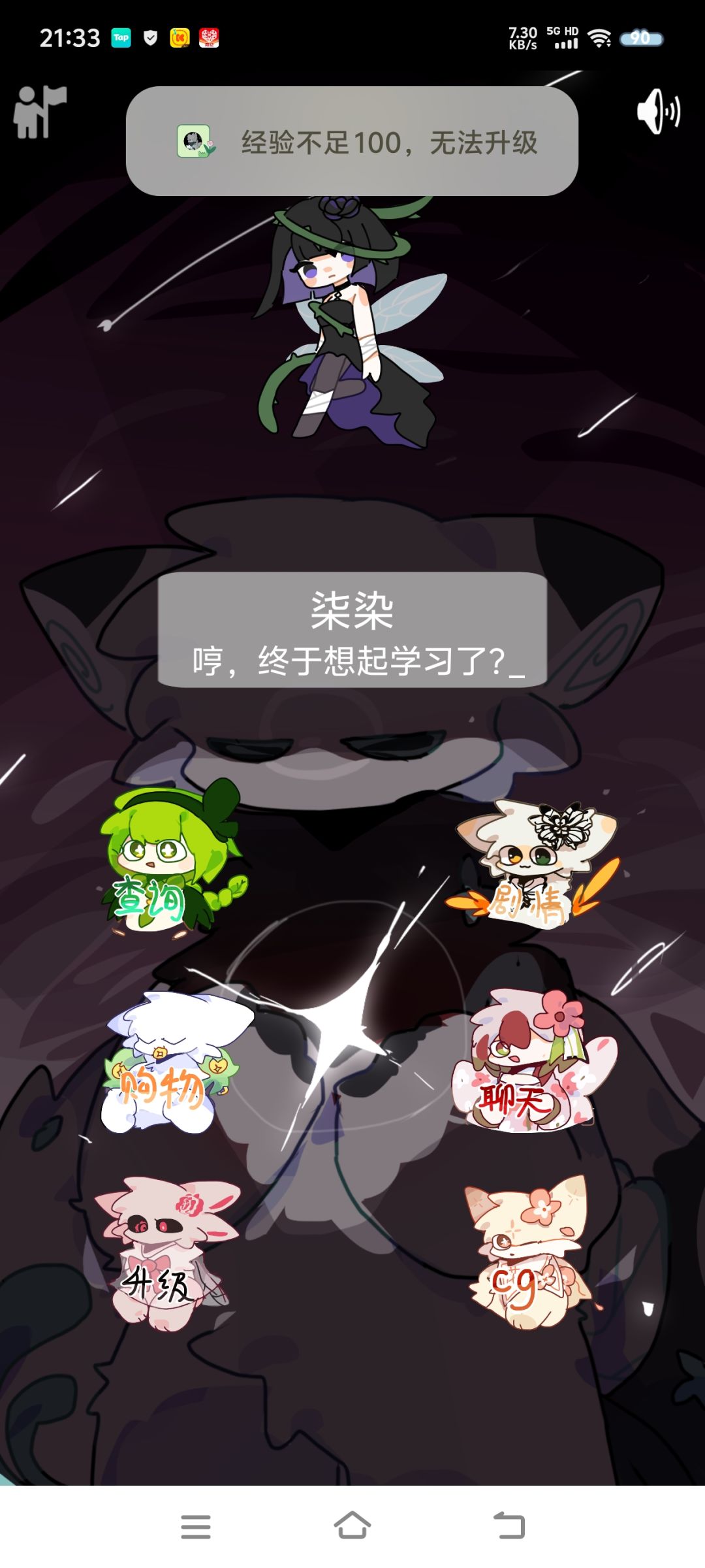 现在有了我们自己的学习精灵了(注意初始精灵无法选择,没错,你别无选择)