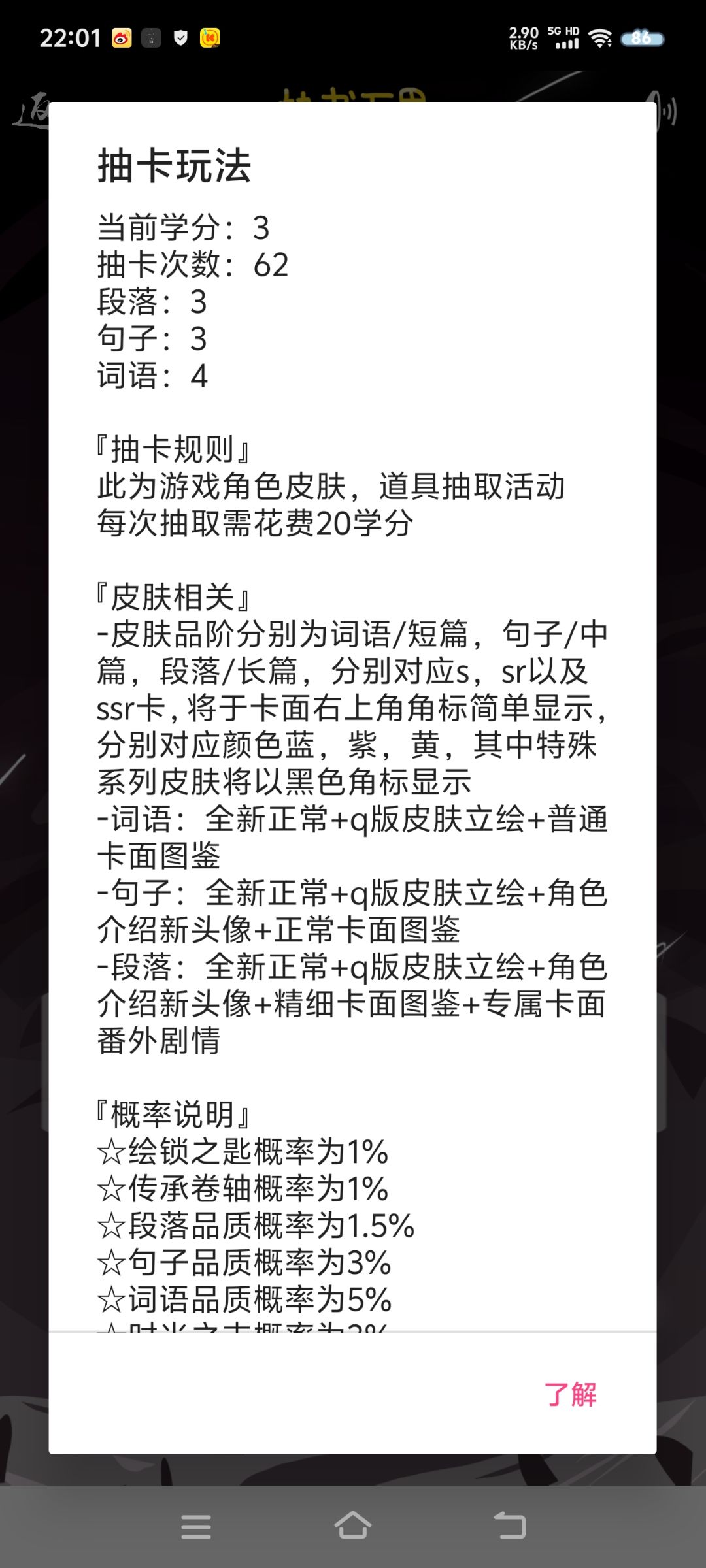 抽卡更新后也就25学分一次,可以抽到皮肤,道具,学分