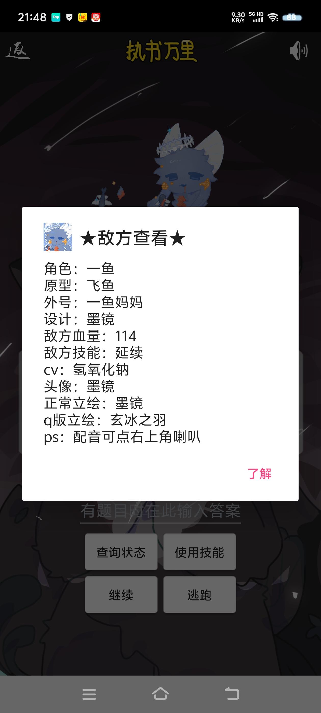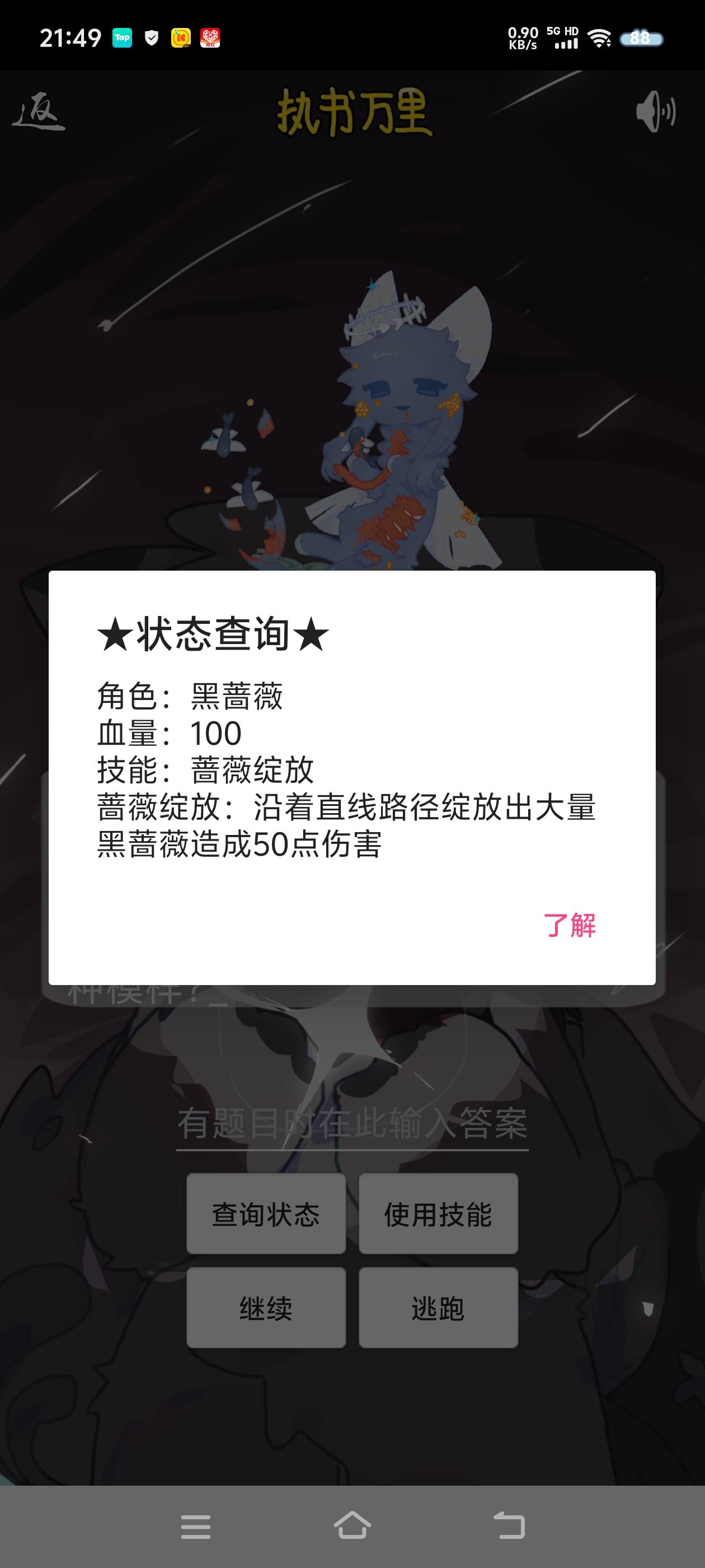 点击查询状态可以查看我们血量,血量过低直接跑就行,因为输了会扣好感和声望