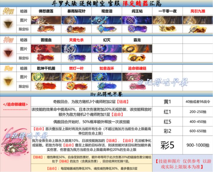 【图1】目前的所有暗器+新暗器大概技能