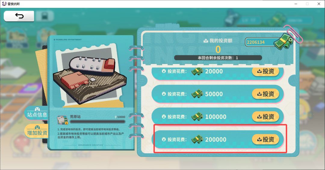 使用【再投资券】可以刷新1次投资次数,记得投资完了再使用。