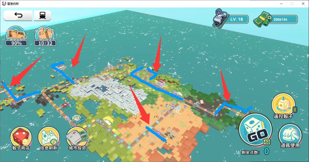 右边通过遥控骰子走到修格里,投资完了之后方向选择左边