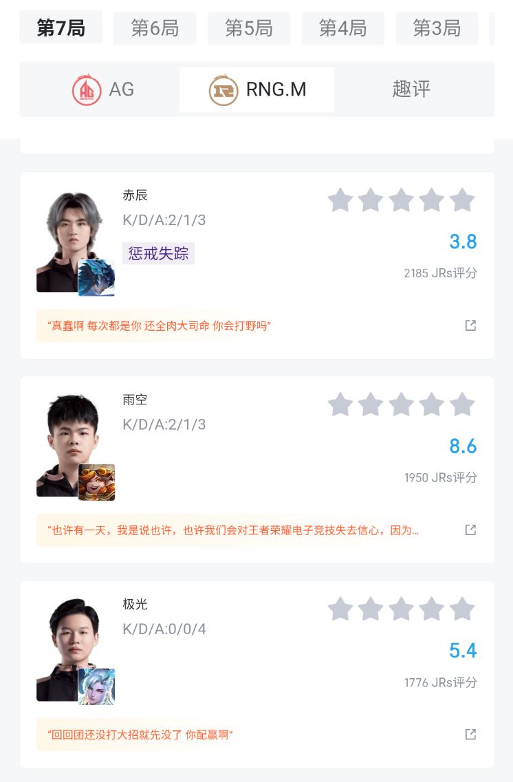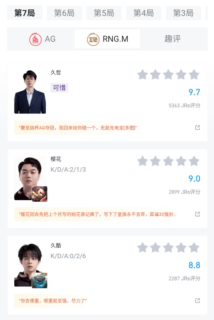 虽然rngm今天输了,但是虽败犹荣,能局中 3-1 ag领先,第五局甚至就差一个水晶就能赢,但最终还是ag赢了,吹起反攻的号角,让三追三!
