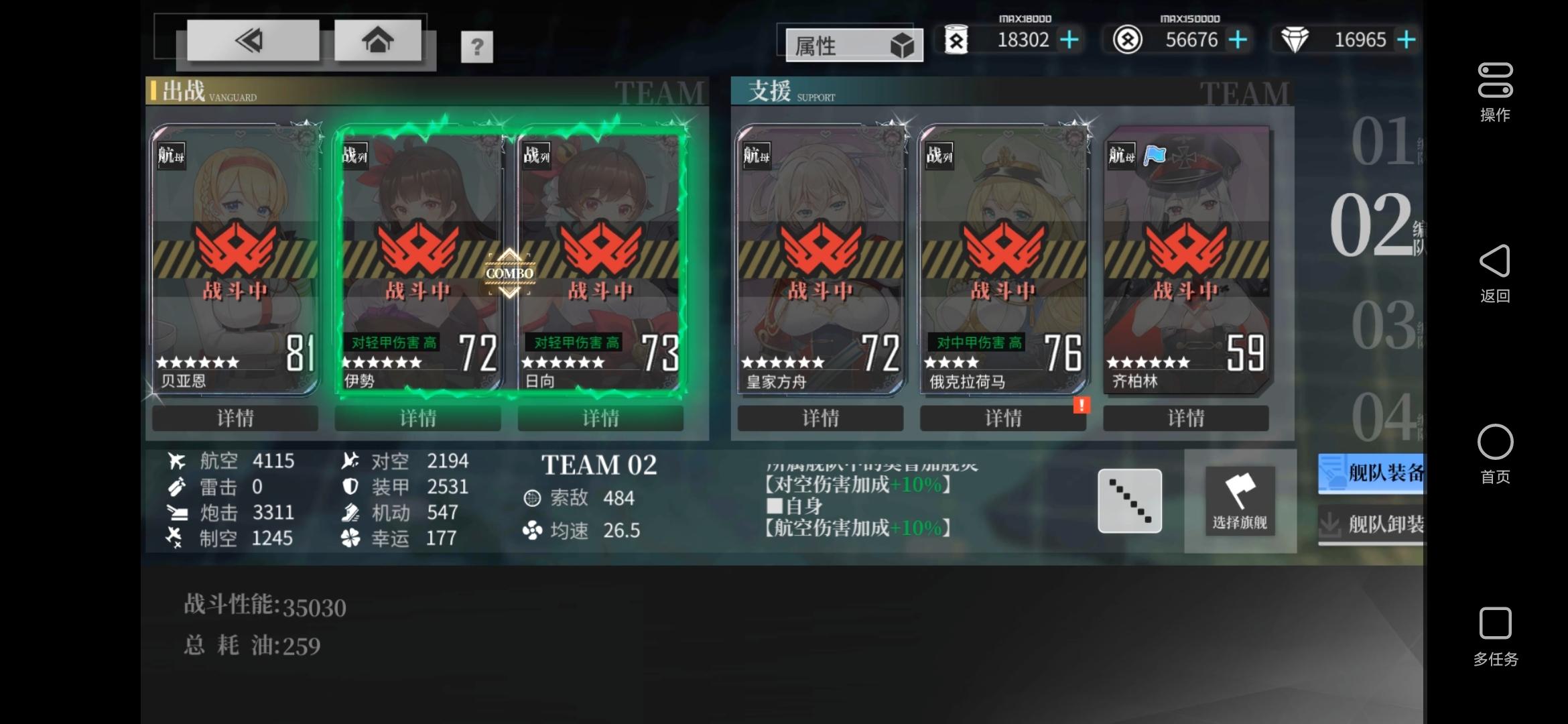 1队带合适的战列/战巡/航母/装母,后排可以带35级无练度的新船,多堆防空。