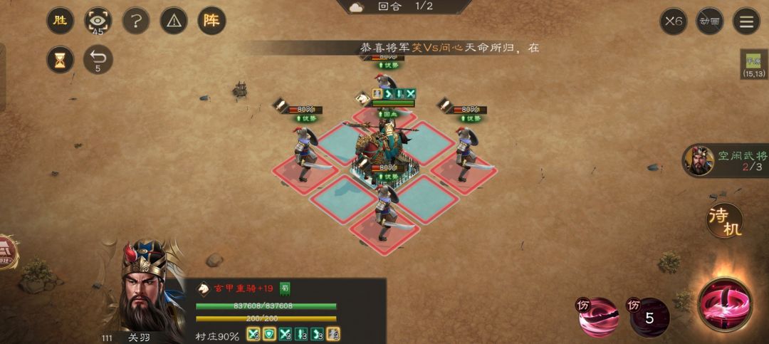 这就能一回合过关了!关键在于加速和第二个人的选取!理论上关羽,吕玲绮等冲锋特技的人最合适!