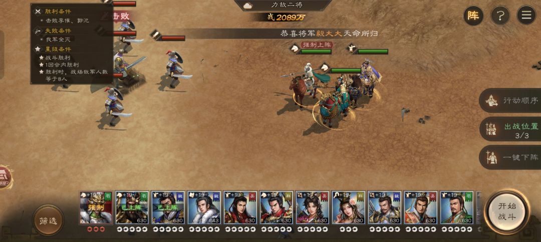 本关要求一回合杀敌人主将,而且敌人小兵不能死