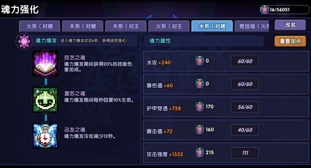 稀有属性选择(技能共鸣18级前):属性压制>伤增≈技能等级>克制增幅>护盾伤害>水攻>攻强