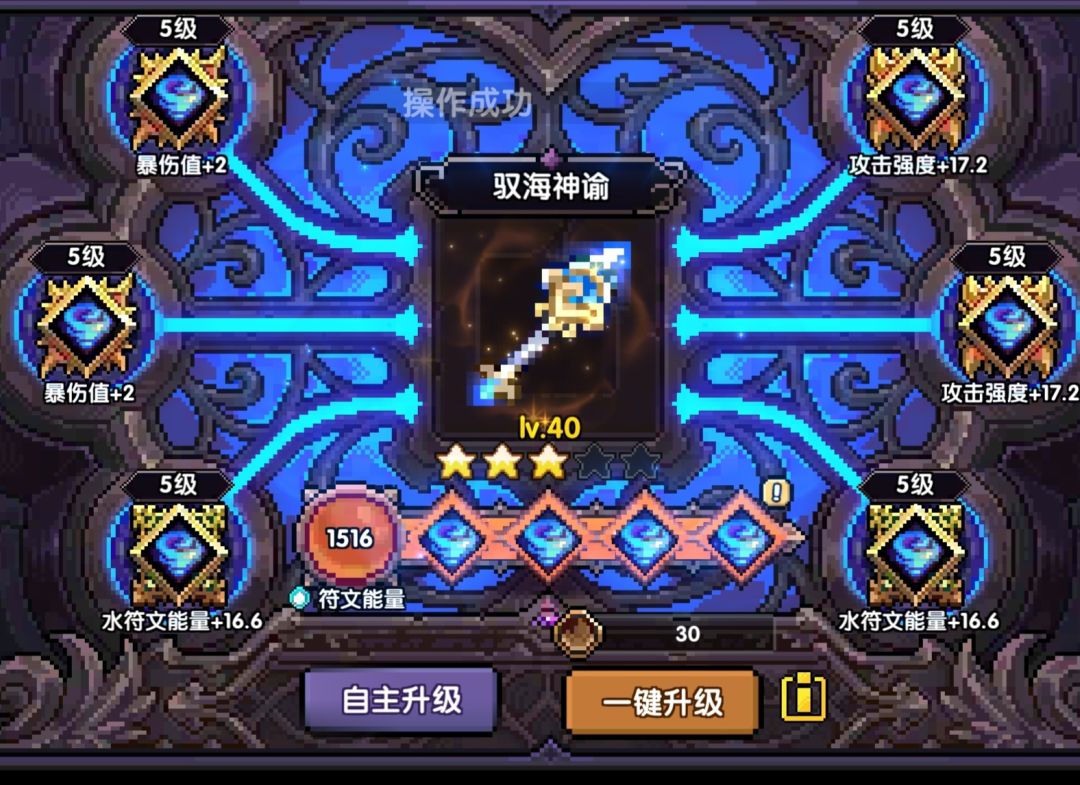 ⚠️注意:驭海神谕别升四星、别升四星、别升四星,升四星就改变橙技能【凝渊】的攻击方式了