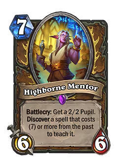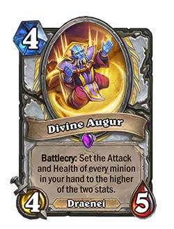 - 旧:[2费] 发现一张随从牌。如果你的牌库中没有随从牌,使你手牌中的随从牌法力值消耗减少(2)点。