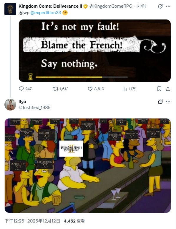 《天国拯救2》的官方账号为法国人送上祝福,但玩家们心有不甘