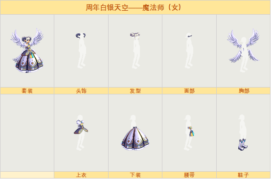 套装效果上,银白主色调的蓬松裙装与羽翼元素为套装主体,郡主风格的时装设计非常凸显,契合女魔法师的萌系灵动气质,整套造型精致又充满华丽感,蓬松裙摆与细节装饰让角色既可爱又不失气场。