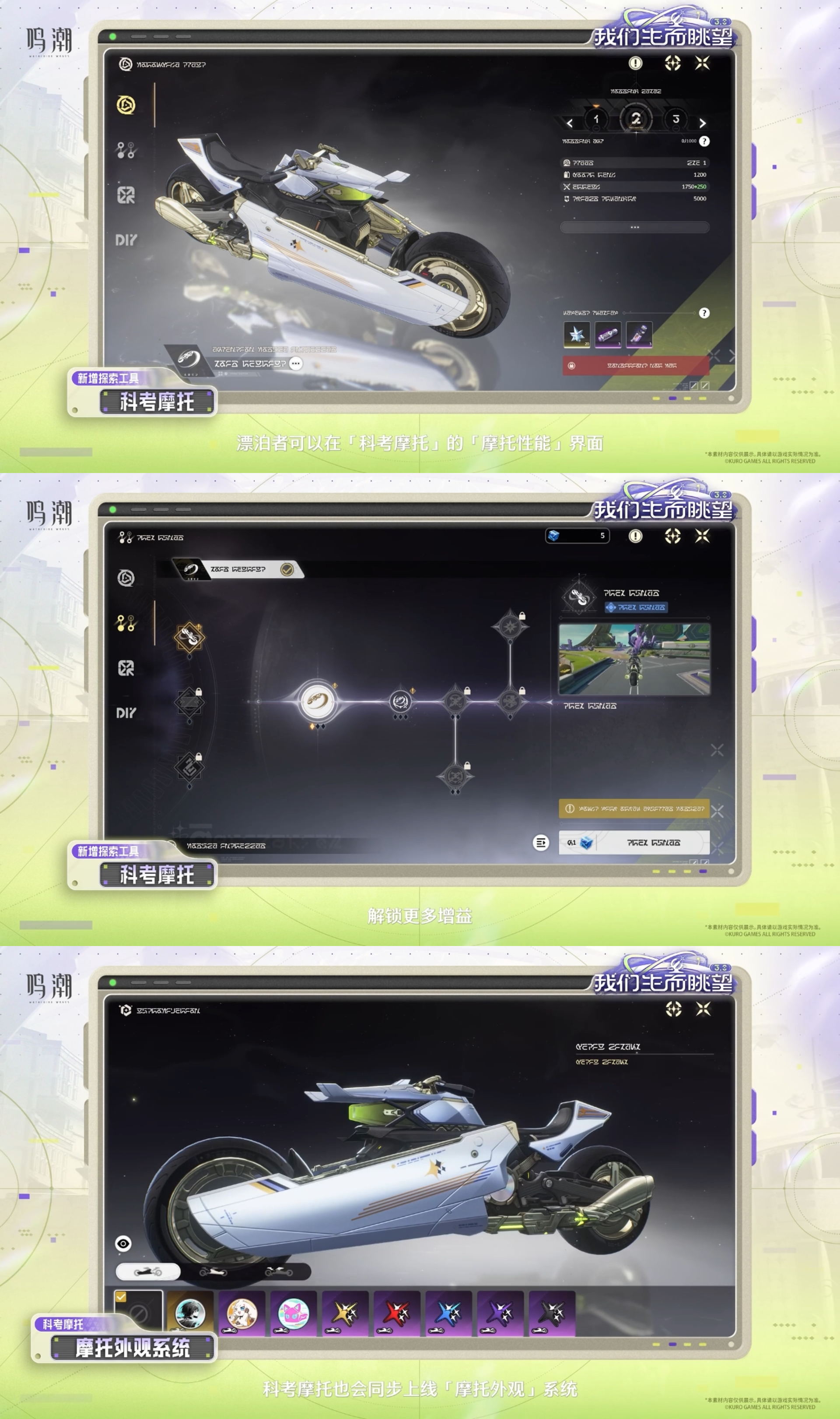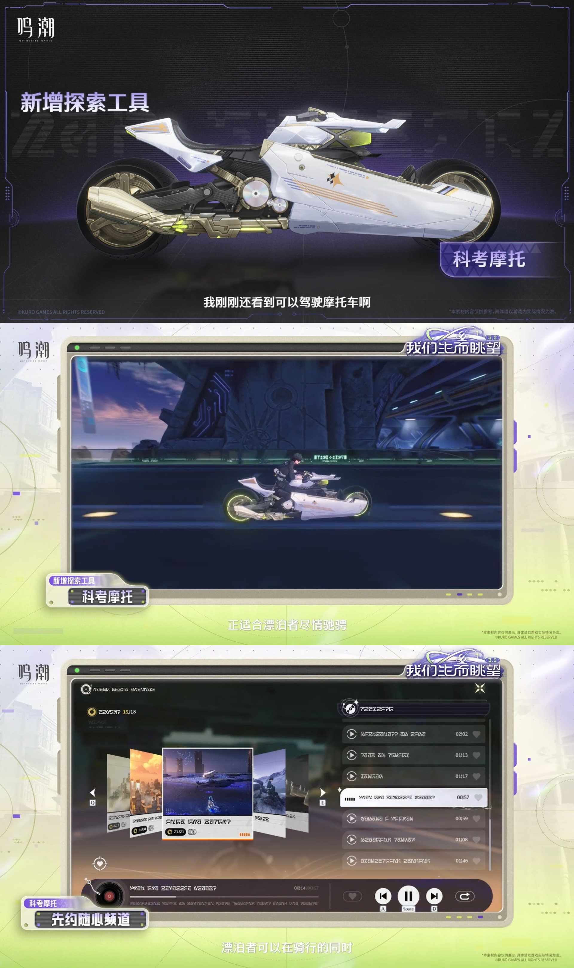- 新探索工具:科考摩托(漂移、电台、鹰眼骇入获取多个宝箱、自定义外观、共乘)