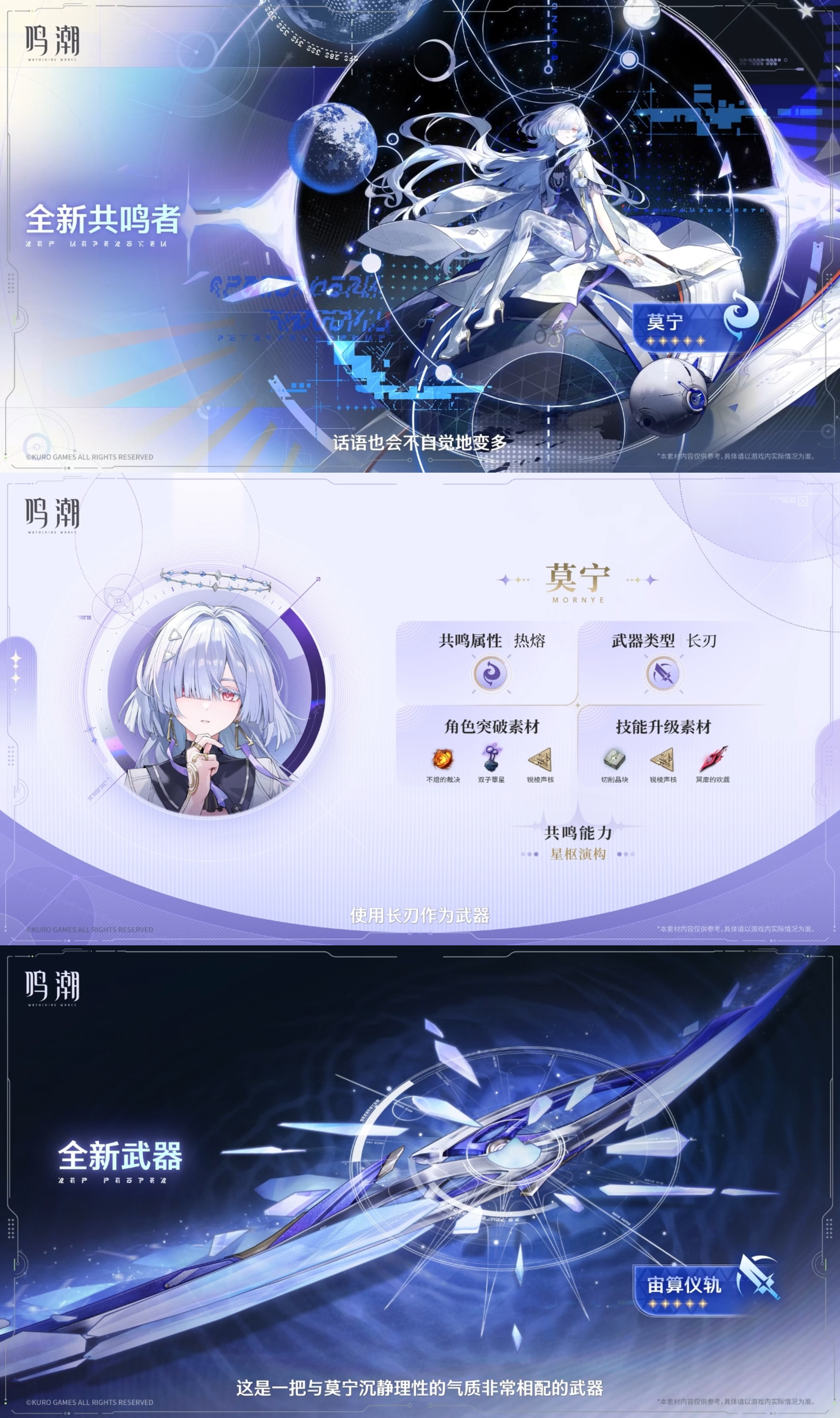 - 下半角色「热熔」属性「长刃」全新共鸣者莫宁登场(专武:宙算仪轨)