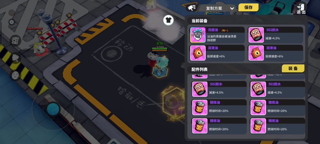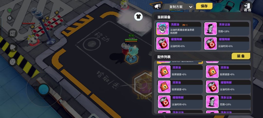 评价:此搭配的想法是增加敌人的沾油时间,也是增加洗面奶的持续时间,让洗面奶遮挡视野的时间更长