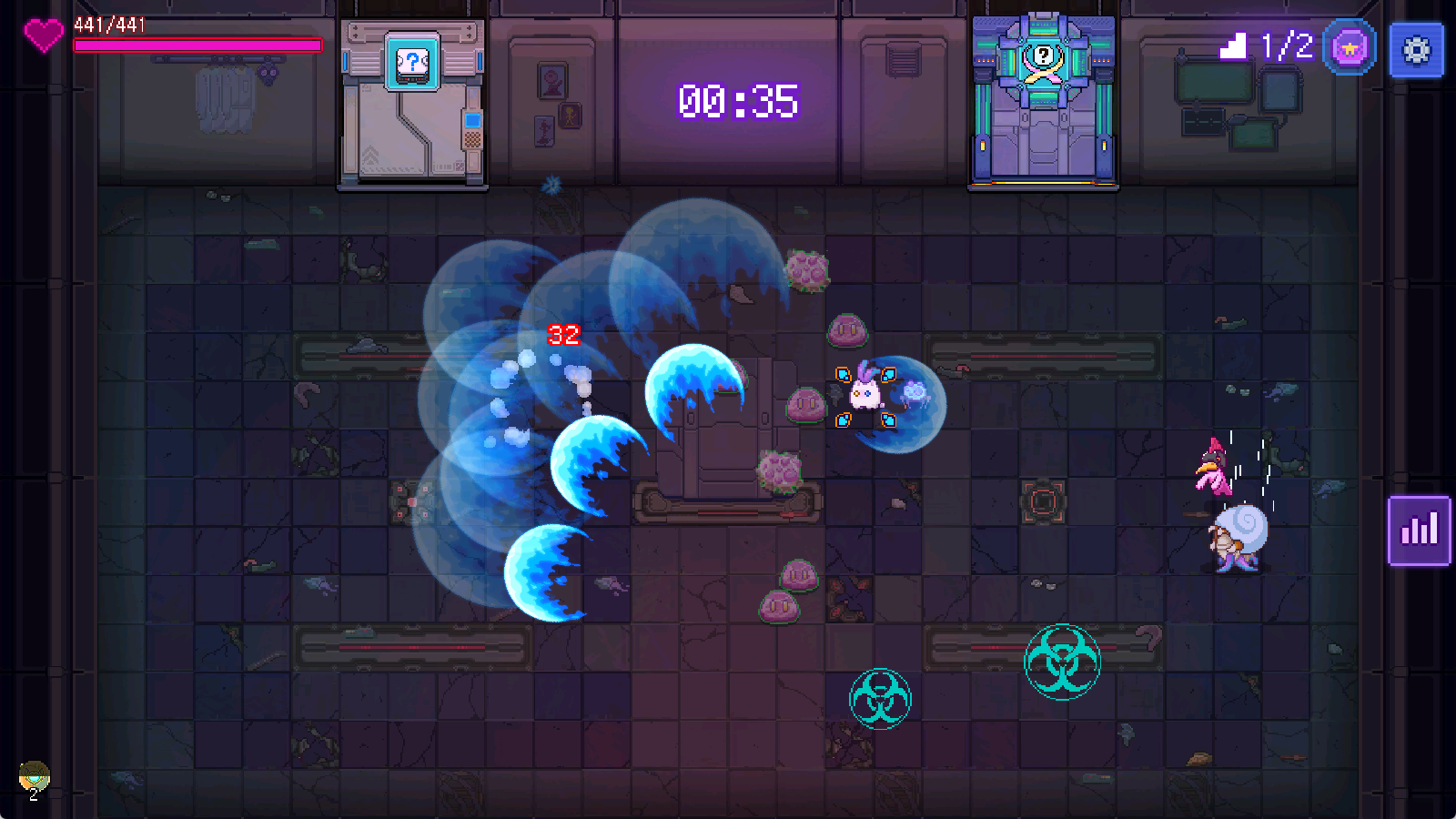 基因可以用于从生命到额外技能等多个维度来加强我们的粉色实验体,可以通过关卡内战斗获得