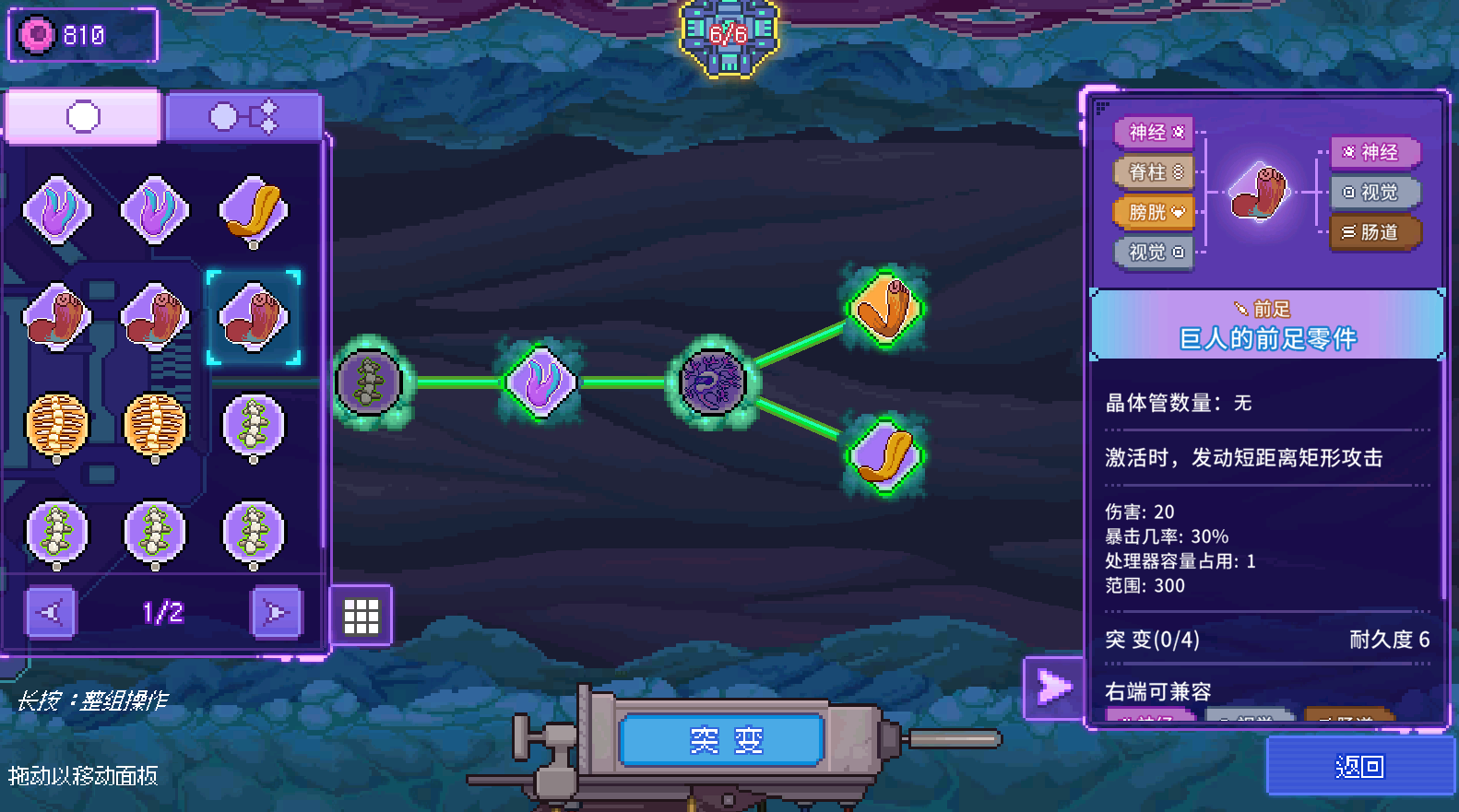 在这里除了为我们的核心添加各种仿生零件外,还可以对仿生零件进行突变(加/刷词条)